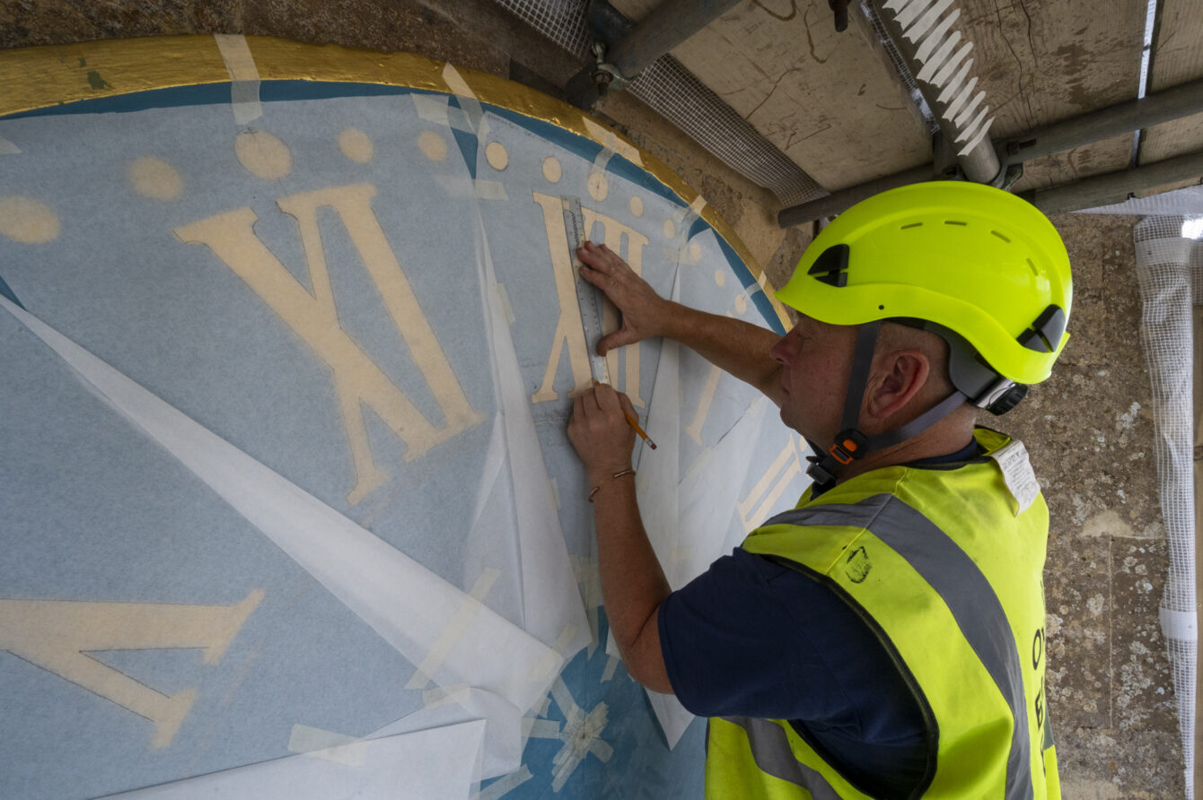 These essential works are being carried out as the old clock face paint is sun bleached and starting to peel, particularly on the east and southern face. As a result, the gilded numerals on the clock face have also started to fade.